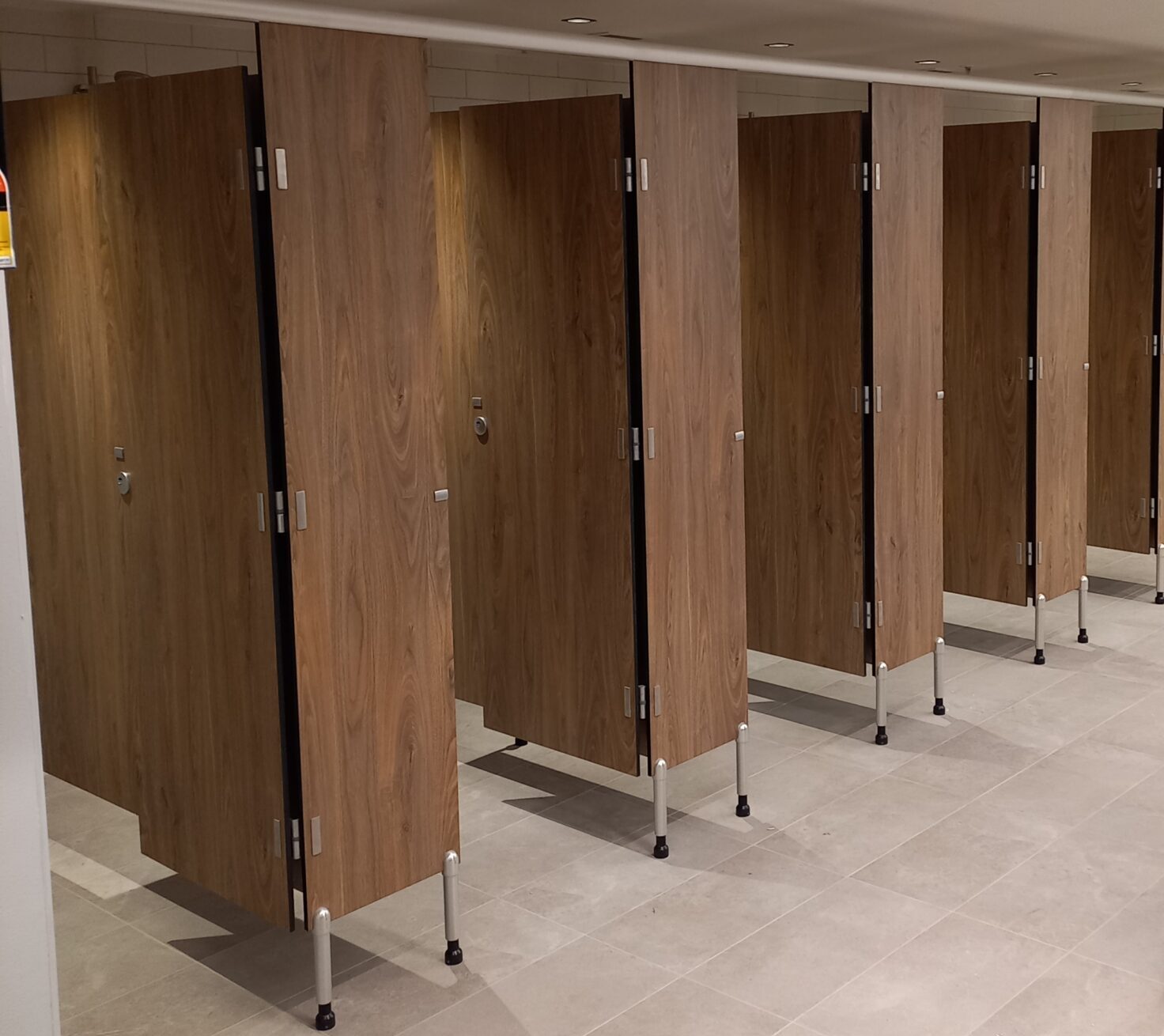 ABP and builder Belnic collaborated thoughtfully on the EOT facilities at 135 Coronation Drive, delivering a high-quality user experience. ABP’s expertise shines through in the toilet partitions, lockers, vanities, and custom bench seating. They chose the ABP Leichhardt series, a durable and functional pedestal-mounted overhead braced system, for toilet partitions. These partitions feature elegant Laminex Natural Walnut 13mm Compact laminate, complemented by ABP Ainslie Series hardware and Capral Clear anodized aluminum.