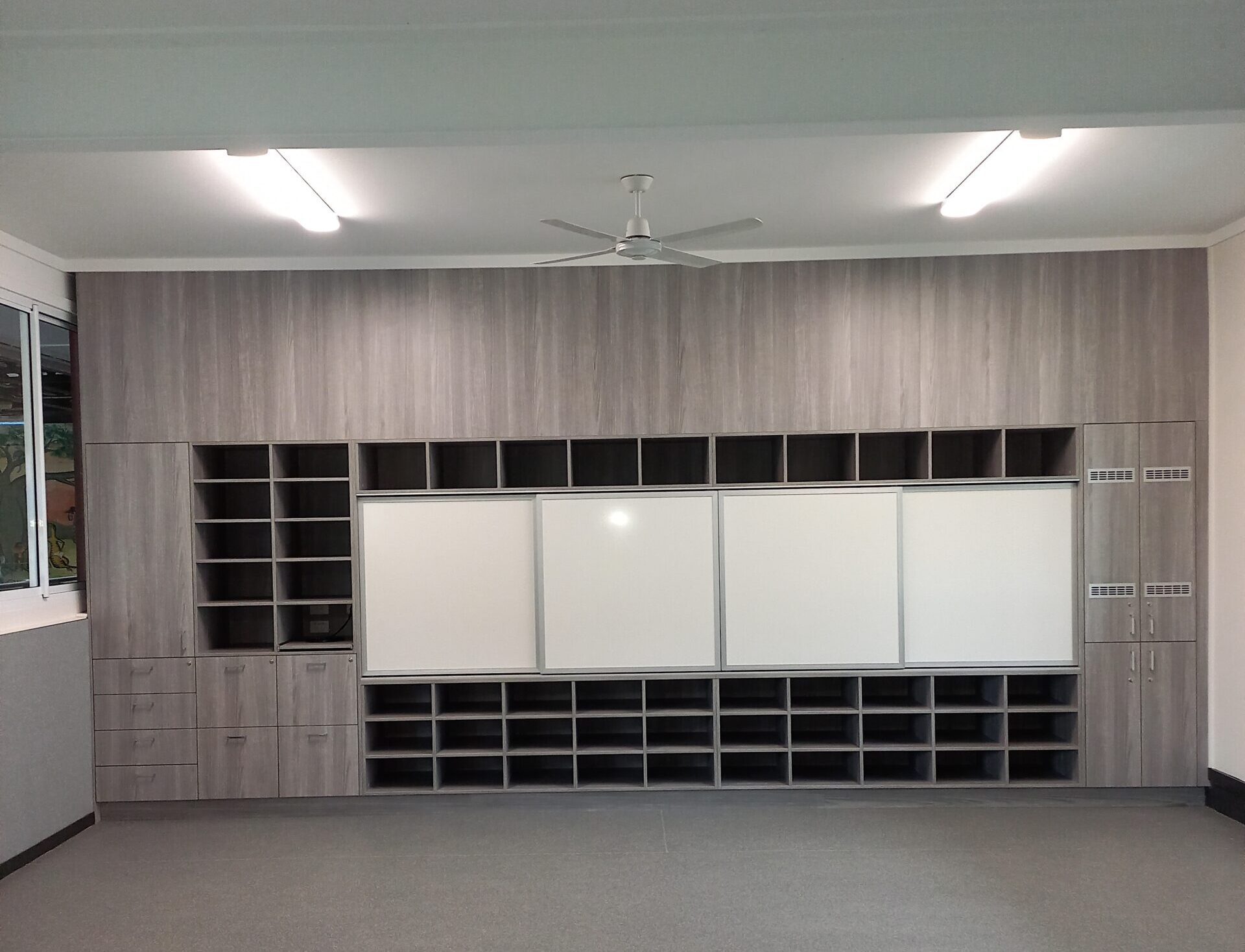 The recently renovated classroom block at Brassall State School has undergone a remarkable transformation. In seven classrooms, we’ve introduced innovative Teaching walls, enhancing the learning environment. Additionally, we’ve incorporated Compact Laminate bag racks and lockable shelving, ensuring students’ belongings are well-organized. To create a conducive atmosphere for focused learning, Quietspace has been applied to the classroom walls, reducing noise and distractions. Each room boasts a striking feature wall adorned with Autex Quietspace, contributing to a visually appealing and acoustically optimized space. These improvements signify a commitment to providing students with a modern, functional, and aesthetically pleasing educational setting, fostering a conducive atmosphere for effective learning and growth.